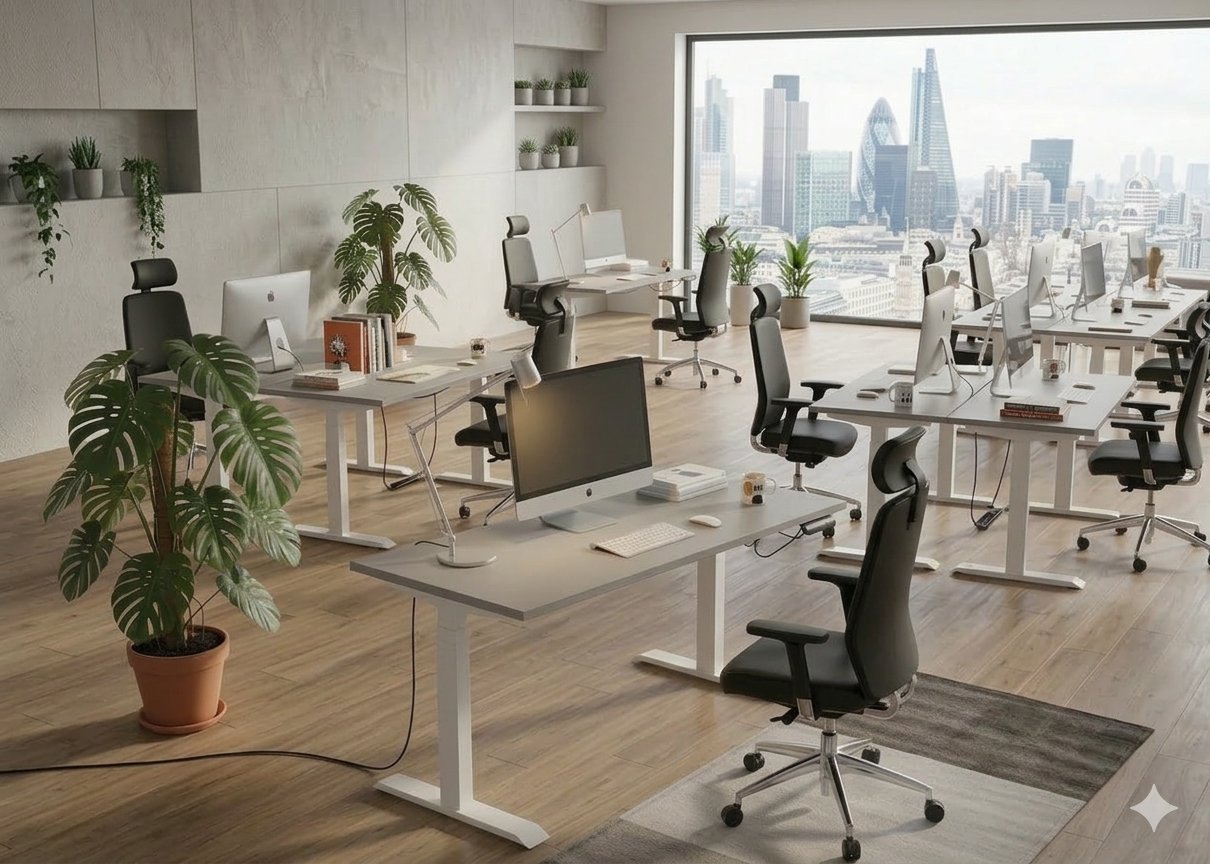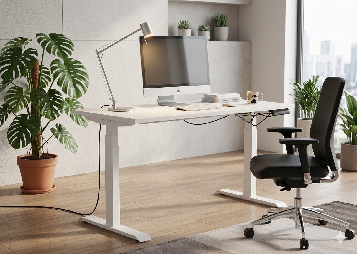 Aby pracować bardziej zdrowo najlepiej jest siedzieć i stać naprzemiennie, w czym pomóc może stelaż z elektryczną regulacją wysokości i pamięcią ustawień.