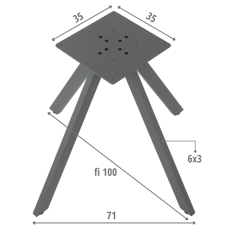Metalowy element górny podstawy stołu/stolika NY-B007 mocowany 8 śrubami do czterech nóg. Metalowa noga podstawy NY-B007 ze stopką regulowaną.